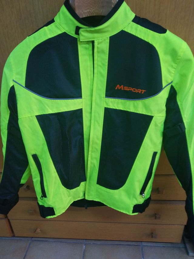 Detalles del productoChaqueta de moto MSPORT en color verde neón y negro. Diseño moderno y llamativo.