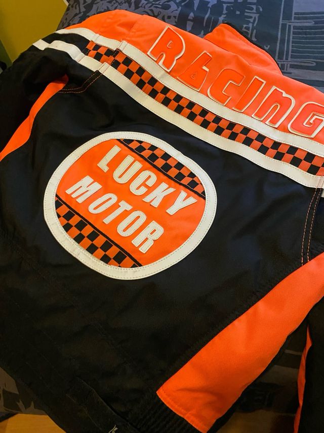 Detalles del productoChaqueta de moto para niño con diseño deportivo.