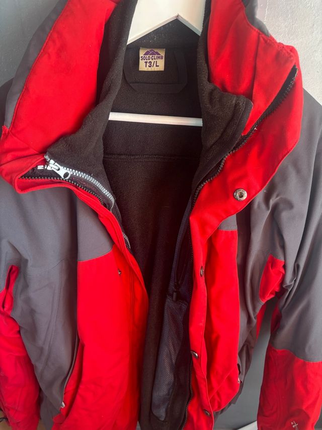 Chaqueta de nieve de la marca SOLO CLIMB en talla T3/L. Diseñada para actividades al aire libre. - Color gris y rojo. - Cierre de cremallera. - Cuello alto con forro interior.