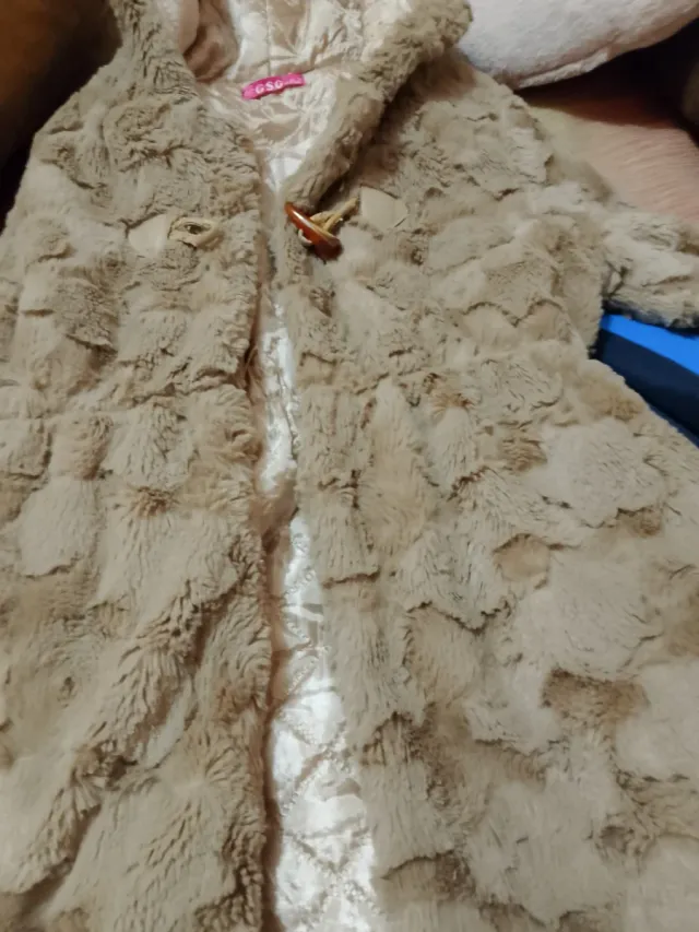 Chaqueta de pelo sintético con capucha,talla 12