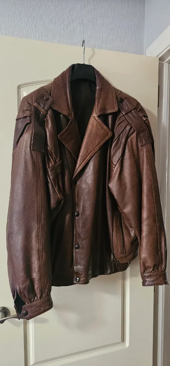 Chaqueta de piel marrón hombre XL