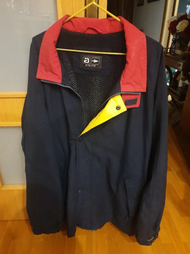 Chaqueta deportiva azul y roja