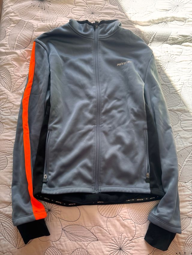 Chaqueta deportiva gris y naranja