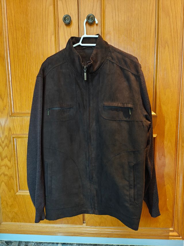 Combina tejido tipo ante en la parte frontal con punto en mangas y espalda, lo que aporta un estilo moderno y cómodo. Interior forrado con bolsillos funcionales.