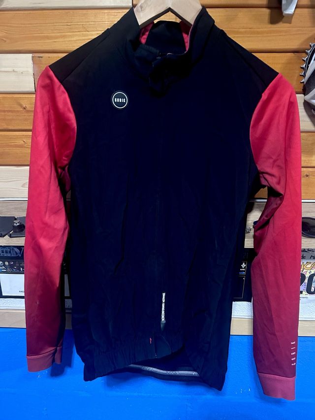 Chaqueta GOBIK de manga larga con diseño bicolor. - Mangas de color rojo vibrante. - Cuerpo principal en color negro. - Logo de GOBIK en el pecho.