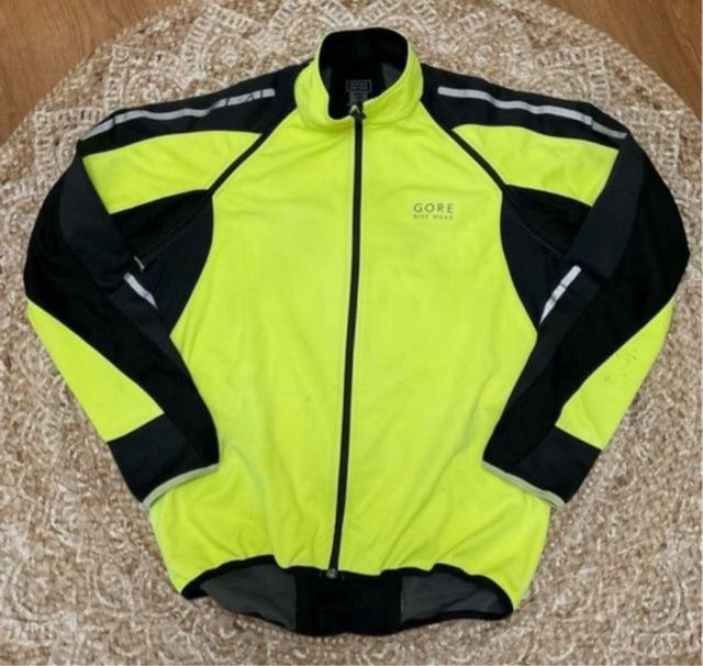 Detalles del productoChaqueta térmica GORE BIKE WEAR WINDSTOPPER, color flúor usada pero en perfecto estado tiene pequeñas manchas del uso talla XL tiene tres bolsillos traseros con líneas reflectantes, muy práctico para días de frío llevar protegido el pecho y los brazos poderlos llevar libres de movimiento se quita las mangas. Tenéis medidas de todo