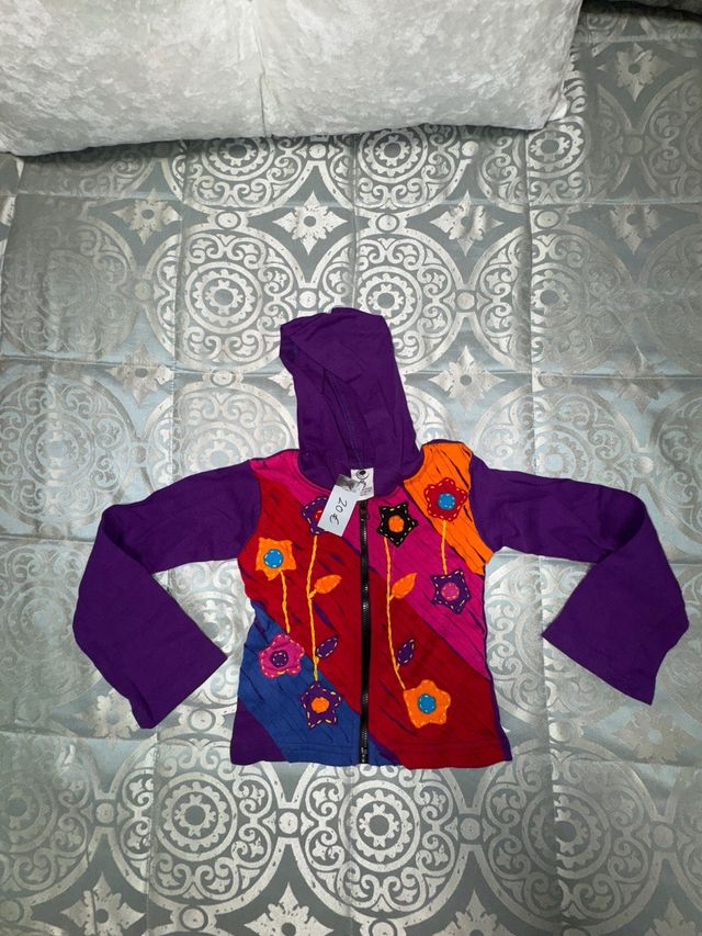 Detalles del productoChaqueta infantil con capucha y un divertido diseño de flores.