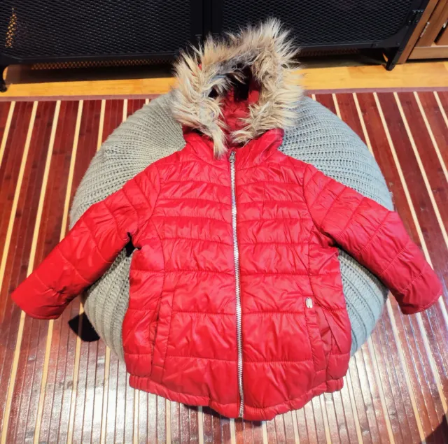 Chaqueta infantil de color rojo con capucha y pelo. - Talla 2. - Cierre de cremallera. - Diseño acolchado. En muy buen estado. Solo venta por wallapop.