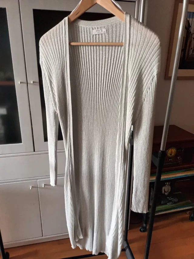 Chaqueta larga plateada con brillos
