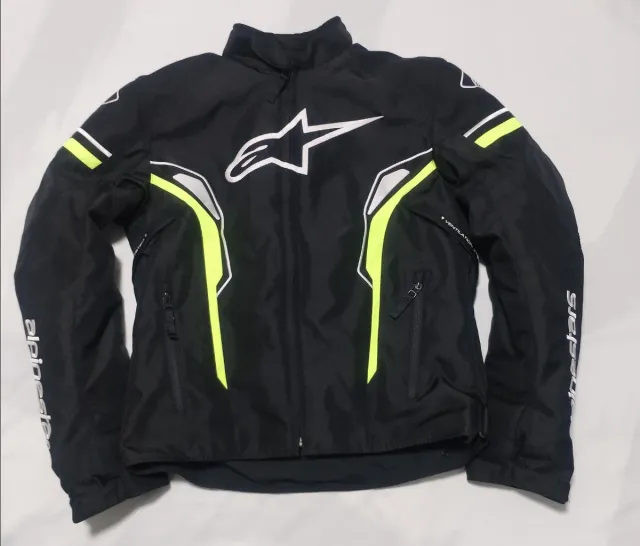 Detalles del productoChaqueta de moto Alpinestars talla S, en color negro con detalles en amarillo flúor y blanco. Diseño deportivo y moderno. Lleva todas sus protecciones mas la espaldera (comprada aparte 59€) forro de invierno desmontable y cremalleras de ventilación.
