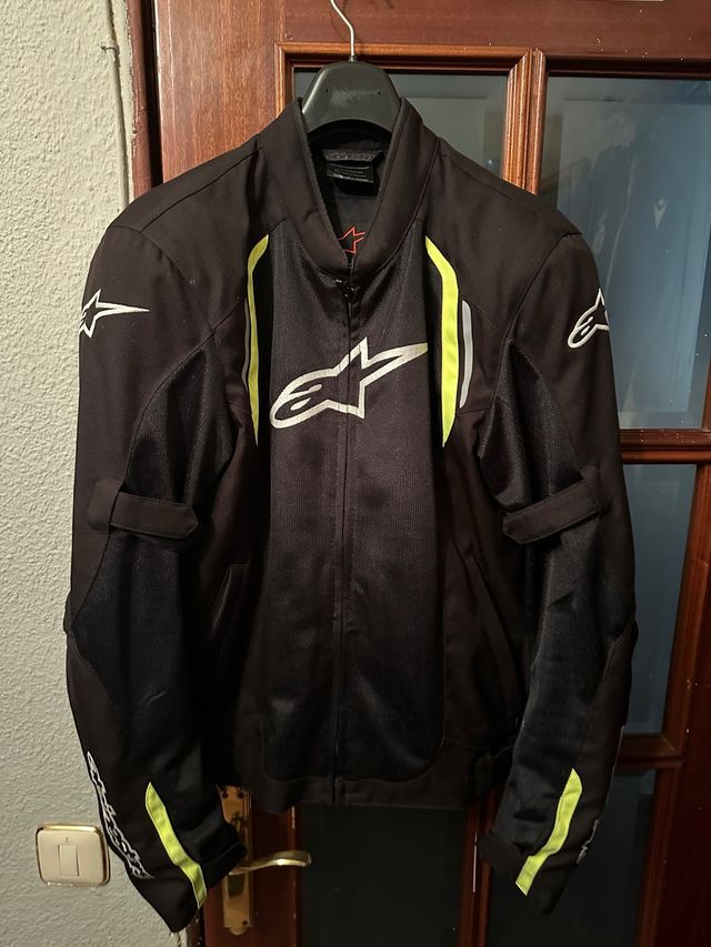 Detalles del productoChaqueta de moto Alpinestars para verano. Diseño en color negro con detalles en amarillo y blanco.
