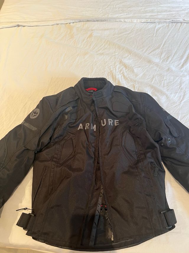 Detalles del productoChaqueta de moto ARMURE en color negro, talla L. Está en buen estado.