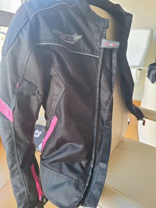 Detalles del productoChaqueta de moto ATROX Race Gear en color negro con detalles en rosa. Diseñada para ofrecer comodidad y protección.