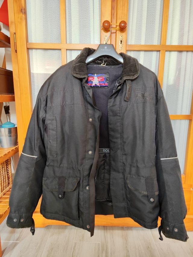 Detalles del productoChaqueta de moto de cordura ROL, negra y en buen estado.