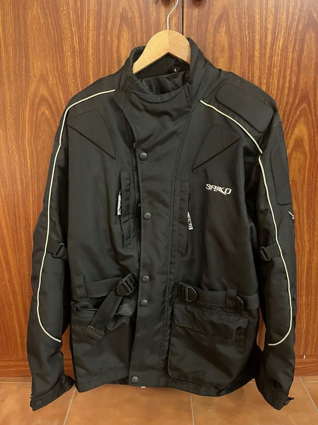 Detalles del productoChaqueta de motorista Saiko para hombre, de color negro. Diseñada para ofrecer comodidad y protección.