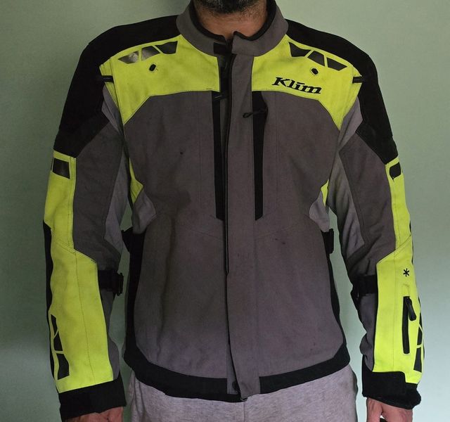 Detalles del productoChaqueta de moto Klim Latitude en color gris y amarillo neón.