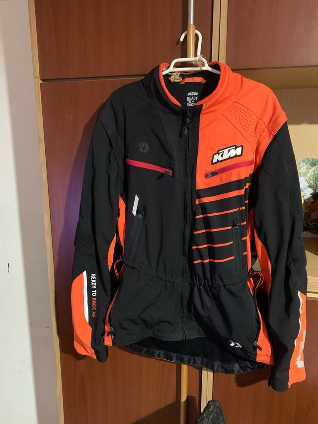 Detalles del productoChaqueta de moto KTM en colores negro y naranja, con un diseño deportivo.