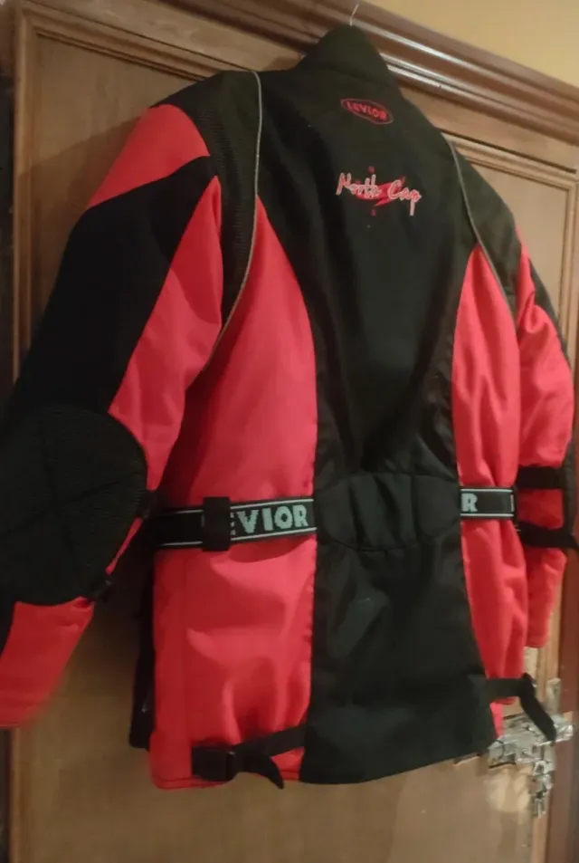 Detalles del productoChaqueta de moto Levior en color rojo y negro, talla S. Ideal para protegerte en tus rutas.