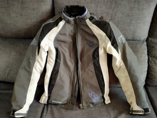 Detalles del productoChaqueta de moto para mujer con protecciónes, diseñada con un estilo moderno y detalles llamativos.