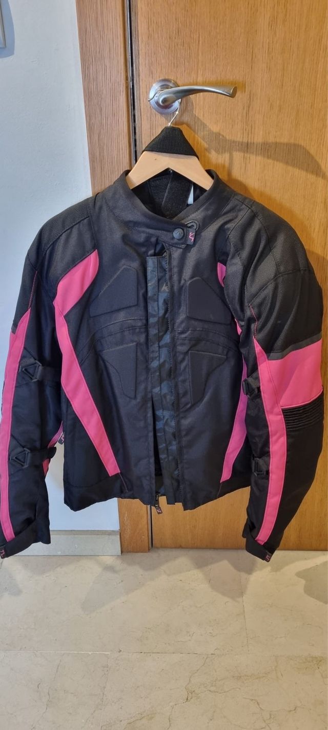 Detalles del productoChaqueta de moto diseñada para mujer, forro extraible para invierno/verano, cremalleras con ventilaciones, protecciones en espalda, codos y hombros como nueva, puesta 2 veces contadas.