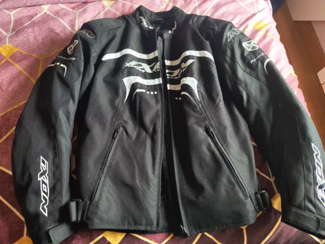 Detalles del productoChaqueta de moto negra con detalles blancos de la marca ixon