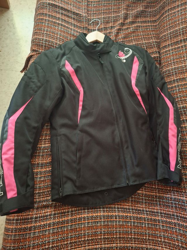Chaqueta Moto Mujer, Negra y Rosa Talla XS