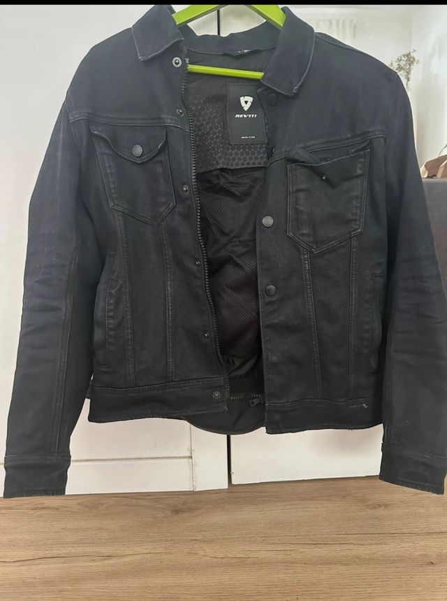 Detalles del productoChaqueta de moto Rev'it de color negro. Diseño clásico tipo denim.