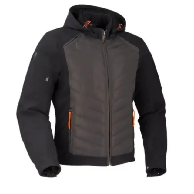 Detalles del productoChaqueta de moto ,marca SEGURA NAtcho ,con capucha ,diseño moderno y detalles en naranja.