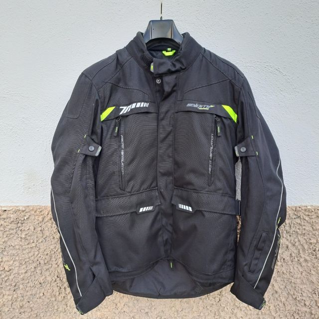 Detalles del productoChaqueta de moto Seventy Degrees, talla L hombre, en muy buen estado. Es negra con detalles en verde lima.