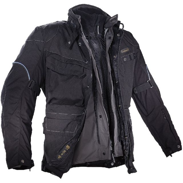 Performance: Cierre con cremallera para la unión chaqueta-pantalón. Protector de espalda empacable, para la colocación en el baúl. Bolsillo impermeable en la parte exterior. Bolsillos extraíbles. Ventilación. Tres camperas en una. Compatible con los productos Set-in Wear.