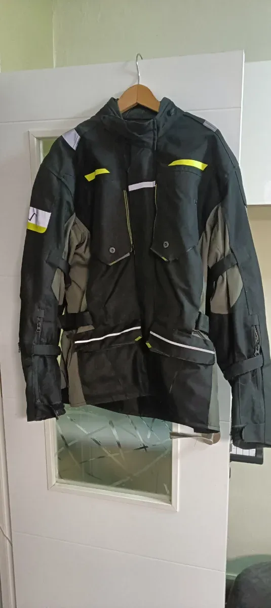 - Cremalleras y ajustes en mangas y cintura, protecciones en hombros codos y espalda, chaqueta de 4 estaciones con 4 capas, se estrecha de cintura y queda entallada, yo mido 1'73 cm y 83kg, solo un año de uso