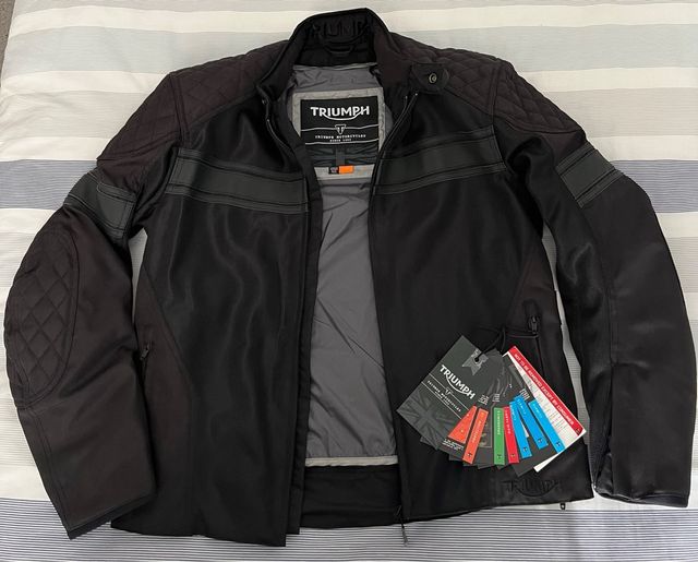 - Insignias del logo Triumph en la parte delantera, trasera, interior y en todos los botones de la chaqueta.