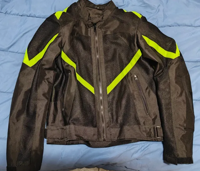 Detalles del productoChaqueta de moto Airmen, ideal para el verano. Diseño en color negro con detalles en flúor. Talla XXL pero no es muy grande equivale a una XL.