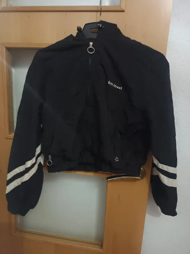 Chaqueta negra con detalles blancos