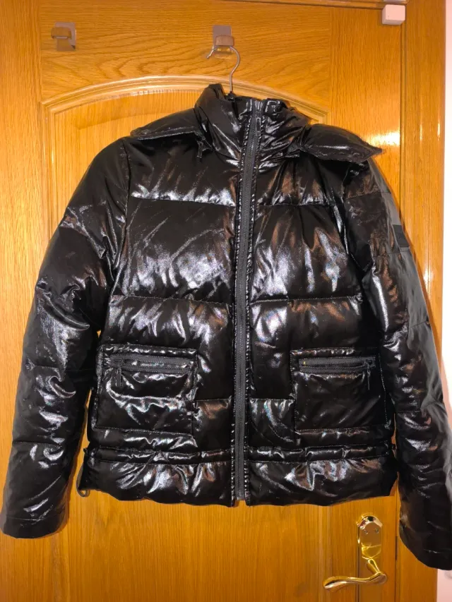 Chaqueta negra, es como una talla M
