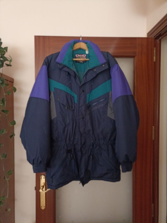 Detalles del productoChaqueta de nieve vintage, ideal para los amantes del estilo retro. Es una prenda muy colorida y llamativa.
