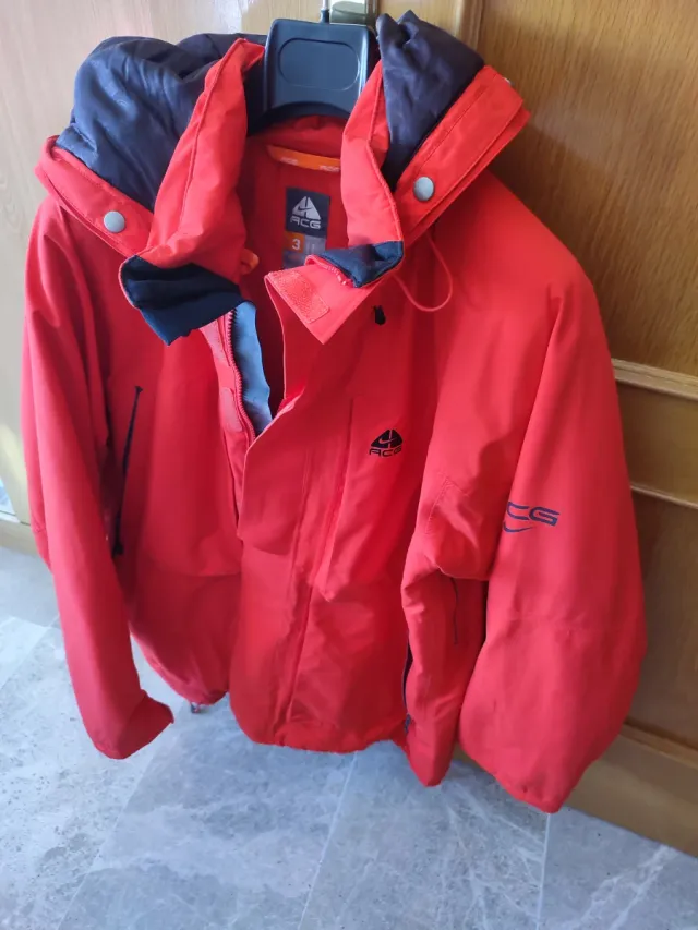 Chaqueta Nike ACG de color rojo. - Talla XL - Diseño con capucha. - Gore-Tex - Múltiples bolsillos con cremalleras