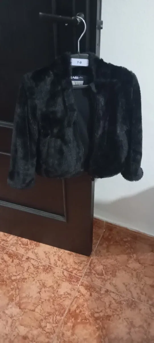 Chaqueta de pelo sintético para niña, color negro. - Talla 2 a 3 años - Diseño corto y elegante.