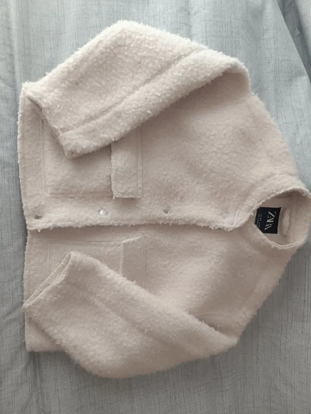 Chaqueta de niña de la marca Zara. Es una prenda suave y cómoda. - Material de borreguito. - Cierre de botones. - Bolsillos delanteros.