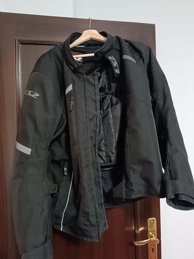 Detalles del productoChaqueta para moto con su correspondiente forro de quita y pon y, sus protecciones (salvo espalda). Talla L. Tiene dos puestas, está como a estrenar.
