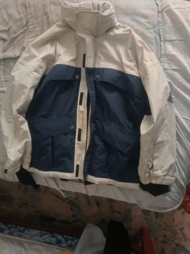 Detalles del productoChaqueta de invierno con diseño bicolor en blanco y azul marino. Ideal para protegerse del frío y la nieve.