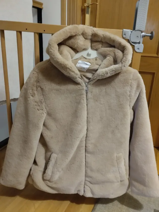 Chaqueta pelo beige con capucha
