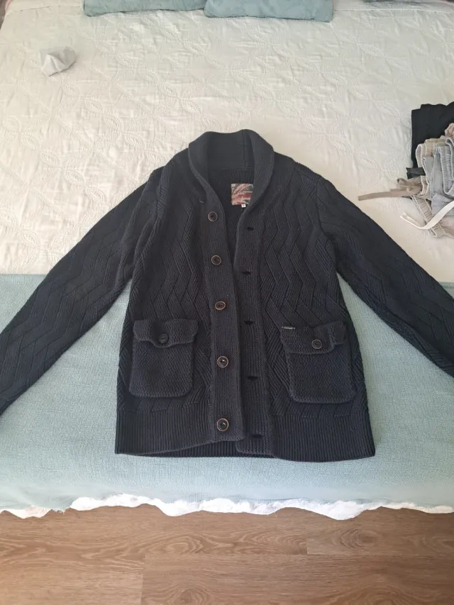 Chaqueta de punto de la marca Pepe Jeans. - Color azul marino. - Cuello tipo chal. - Cierre de botones. - Dos bolsillos delanteros con solapa.