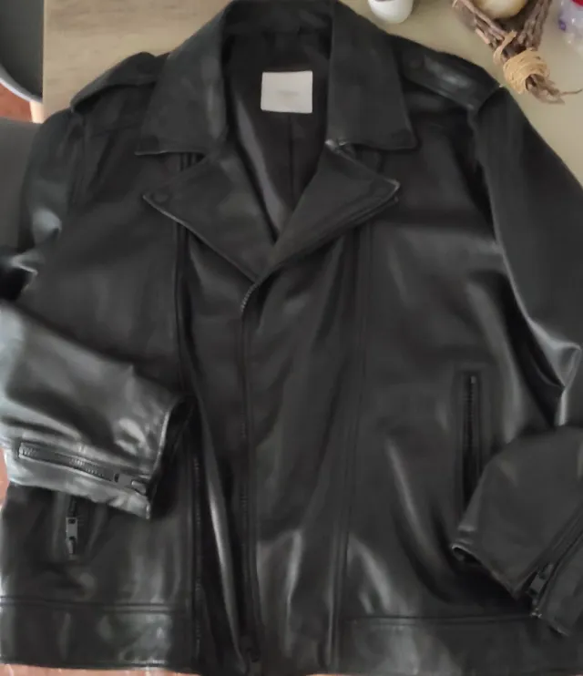 Chaqueta Piel Cruzada Hombre Negra,piel de ovino.