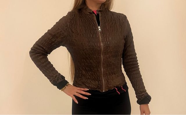 Chaqueta piel marrón diseño fruncido