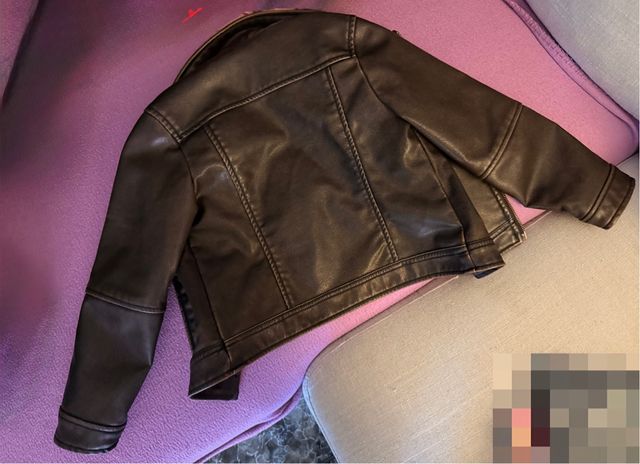 Chaqueta de piel sintética para niños. - Diseño moderno y versátil. - Material de imitación piel. - Cierre de cremallera. - como nueva - Talla 122 (6-7 años)