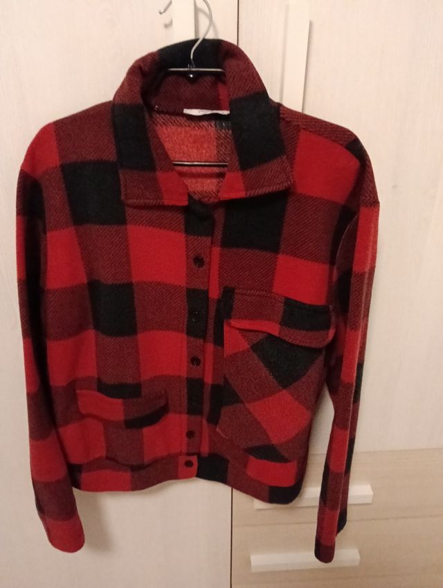 Chaqueta polar a cuadros roja y negra
