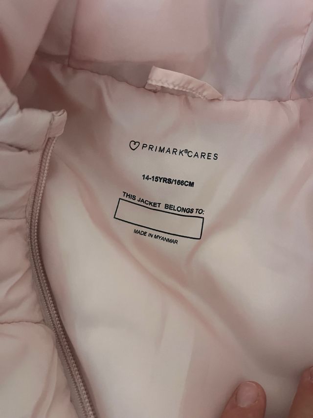 Chaqueta de Primark para niña, talla 14-15 años (166 cm). - Marca: Primark Cares - Fabricada en Myanmar - Espacio para nombre del propietario