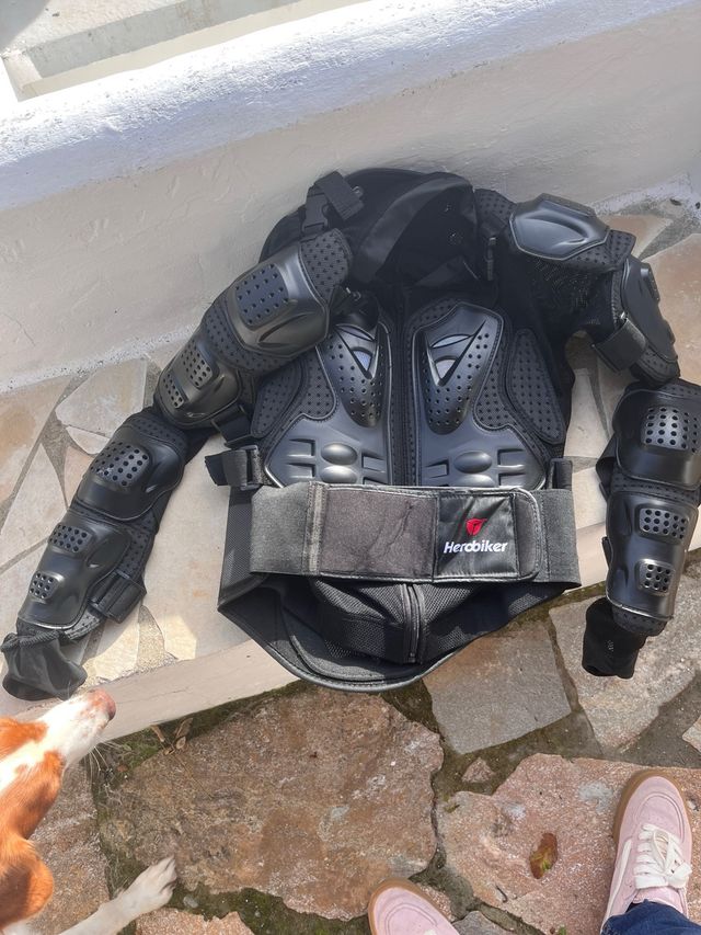 - Protecciones integradas en hombros, codos, pecho y espalda.