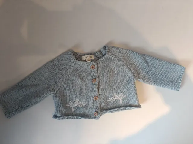 Chaqueta de punto azul claro de la marca Gocco. - Talla 0/1 mes. - Cierre de botones. - Detalle bordado de pájaros en la parte delantera.